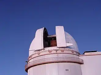The University of Hawaiʻi 88-inch (2.24-meter) telescope—called UH88, UH2.2, or simply 88 by members of the local astronomical community—is situated at the Mauna Kea Observatories and operated by the University's Institute for Astronomy. It was constructed in 1968, and entered service in 1970, at which point it was known as "The Mauna Kea Observatory". It became one of the first professional telescopes to be controlled by a computer.[1] The telescope was built with funding from NASA, to support Solar System missions, and is controlled by the University of Hawaiʻi.[1] The success of the telescope helped demonstrate the value of Mauna Kea for astronomical observations.[1]