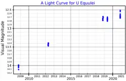 - 1 2 3 Barnbaum, C.; Omont, A.; Morris, M. (1996). "The unusual circumstellar environment of the evolved star, U Equulei". Astronomy and Astrophysics. 310: 259. Bibcode:1996A&A...310..259B.