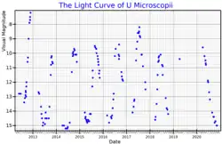 - 1 2 Watson, Christopher (4 January 2010). "U Microscopii". AAVSO Website. American Association of Variable Star Observers. Retrieved 24 March 2015.
