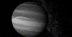 Upsilon Andromedae d is a super-Jupiter, an exoplanet that has a mass larger than that of the planet Jupiter. It has a temperature of 218 K (−55 °C; −67 °F).[7] It has a mass of 10.25 MJ[2] and a likely radius of around 1.02 RJ based on its mass.