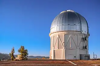 The Víctor M. Blanco Telescope, also known as the Blanco 4m, is a 4-metre aperture telescope located at the Cerro Tololo Inter-American Observatory, Chile on the summit of Mt. Cerro Tololo. Commissioned in 1974 and completed in 1976,[1] the telescope is identical to the Mayall 4m telescope located on Kitt Peak.[2][3][4] In 1995 it was dedicated and named in honour of Puerto Rican astronomer Víctor Manuel Blanco.[5] It was the largest optical telescope in the Southern hemisphere from 1976 until 1998, when the first 8-metre telescope of the ESO Very Large Telescope opened.