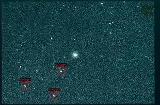 | Proper motion (μ) | RA: −6.449(131) mas/yr[1] Dec.: −5.572(112) mas/yr[1] |