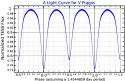 - 1 2 3 4 5 6 7 8 9 10 11 12 Budding, E.; Love, T.; Blackford, M. G.; Banks, T.; Rhodes, M. J. (2021). "Absolute Parameters of Young Stars: V Puppis". Monthly Notices of the Royal Astronomical Society. 502 (4): 6032–6043. arXiv:2102.00362. doi:10.1093/mnras/stab381.