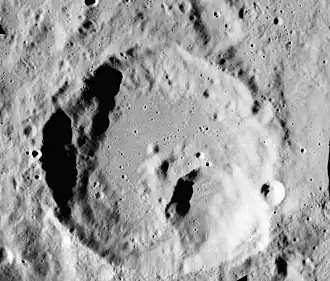 Valier is a lunar impact crater that lies on the far side of the Moon. It is nearly attached to the western rim of the crater Tiselius. To the north-northwest lies the larger Sharonov, to the south-southwest is Coriolis, and west of Valier is Dufay.