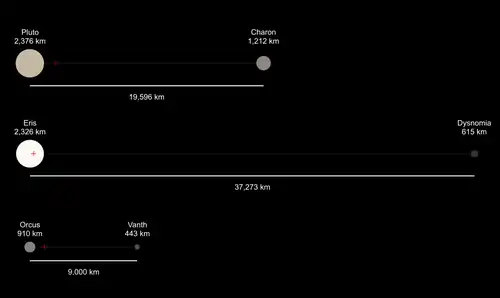 ![]() Vanth (smaller object) and Orcus imaged by the Hubble Space Telescope | |