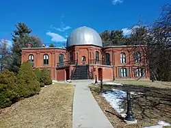 The Vassar College Observatory is an astronomical observatory of the private Vassar College, located near the eastern edge of the Poughkeepsie, New York college's campus. Finished in 1865, it was the first building on the college's campus, older even than the Main Building, with which it shares the status of National Historic Landmark. The observatory's significance is due to its association with Maria Mitchell, the first widely known female astronomer in the United States.[3]