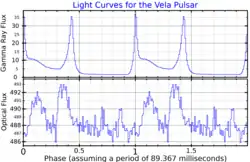 - ↑ Spolon, A.; Zampieri, L.; Burtovoi, A.; Naletto, G.; Barbieri, C.; Barbieri, M.; Patruno, A.; Verroi, E. (2019). "Timing analysis and pulse profile of the Vela pulsar in the optical band from Iqueye observations". MNRAS. 482 (1): 175–183. arXiv:1809.07093. Bibcode:2019MNRAS.482..175S. doi:10.1093/mnras/sty2605.