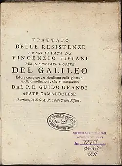 Upon his death, Viviani left an almost completed work on the resistance of solids, which was subsequently completed and published by Luigi Guido Grandi.[1]