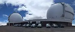 The W. M. Keck Observatory is an astronomical observatory with two telescopes at an elevation of 4,145 meters (13,600 ft) near the summit of Mauna Kea in the U.S. state of Hawaii. Both telescopes have 10 m (33 ft) aperture primary mirrors, and, when completed in 1993 (Keck I) and 1996 (Keck II), they were the largest optical reflecting telescopes in the world. They have been the third and fourth largest since 2006.