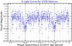 WR 12 (V378 Velorum) is a spectroscopic binary in the constellation Vela. It is an eclipsing binary consisting of a Wolf-Rayet star and a luminous companion of unknown spectral type. The primary is one of the most luminous stars known.