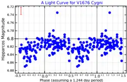 WR 133 is listed as a Wolf-Rayet variable star and has been given the variable star designation V1676 Cyg in the General Catalogue of Variable Stars. Its visual magnitude varies between 6.75 and 6.84.[3]
