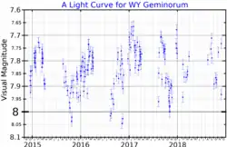 - ↑ "WY Gem", SIMBAD, Centre de données astronomiques de Strasbourg, retrieved 2024-02-09.
