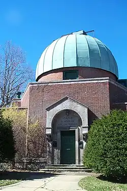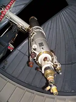 The Rooftop Telescope is a 9.5-inch refractor that was originally constructed in 1894 by Warner and Swasey for their own use.[3] The telescope was the first instrument of the Warner and Swasey Observatory and was originally used at the Taylor Road facility, but was put into storage when the Astronomy Department of Case Western Reserve University was relocated to the A. W. Smith building on the main campus. In 1986 the telescope was reinstalled in a new dome on the roof of the A. W. Smith building.[15]