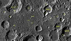 By convention these features are identified on lunar maps by placing the letter on the side of the crater midpoint that is closest to Watt.