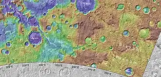 Wegener is an impact crater in the Argyre quadrangle of Mars, located at 64.6°S latitude and 4.0°W longitude. It measures approximately 68.51 kilometres (42.57 mi) in diameter and was named after German geophysicist Alfred Wegener (1880–1930). The name was approved by IAU's Working Group for Planetary System Nomenclature in 1973.[1]