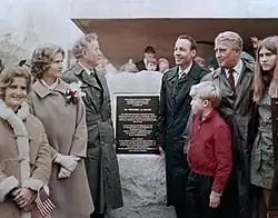 In 1960, his group was assimilated into NASA, where he served as director of the newly formed Marshall Space Flight Center and as the chief architect of the Saturn V super heavy-lift launch vehicle that propelled the Apollo spacecraft to the Moon.[8][9] In 1967, von Braun was inducted into the National Academy of Engineering, and in 1975, he received the National Medal of Science.