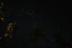 The Winter Hexagon is an asterism appearing to be in the form of a hexagon with vertices at Rigel, Aldebaran, Capella, Pollux, Procyon, and Sirius. It is mostly upon the Northern Hemisphere's celestial sphere. On most locations on Earth (except the South Island of New Zealand and the south of Chile and Argentina and further south), this asterism is visible in the evening sky at the equator from approximately December to June, and in the morning sky from July to the end of November, while in the evenings on the northern hemisphere it is less months visible between December and June, and on the southern hemisphere less months between July and November. In the tropics and southern hemisphere, this (then called "summer hexagon") can be extended with the bright star Canopus in the south.