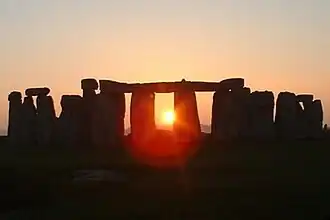 ![]() Sunset at Stonehenge in England during the winter solstice in the Northern Hemisphere | |