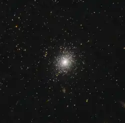 WLM has one known globular cluster (WLM-1) at 00h 01m 29.5s −15° 27 51 that Hodge et al. (1999) determined as having an absolute magnitude of −8.8 and a metallicity of –1.5, with an age of ~15 billion years. This cluster has a luminosity that is slightly over the average for all globulars. The seeming lack of faint low-mass globular clusters cannot be explained by the weak tidal forces of the WLM system.[5]