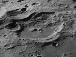 Wood S is adjacent to Wood on the west side. Wood T is a small crater northwest of Wood S, which has a bright ray system.