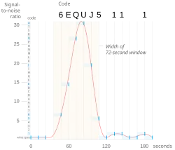 The string 6EQUJ5, commonly misinterpreted as a message encoded in the radio signal, represents in fact the signal's intensity variation over time, expressed in the particular measuring system adopted for the experiment. The signal itself appeared to be an unmodulated continuous wave, although any modulation with a period of less than 10 seconds or longer than 72 seconds would not have been detectable.[7][8]