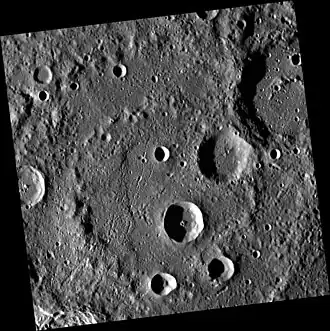 - ↑ Chapman, C. R., Baker, D. M. H., Barnouin, O. S., Fassett, C. I., Marchie, S., Merline, W. J., Ostrach, L. R., Prockter, L. M., and Strom, R. G., 2018. Impact Cratering of Mercury. In Mercury: The View After MESSENGER edited by Sean C. Solomon, Larry R. Nittler, and Brian J. Anderson. Cambridge Planetary Science. Chapter 9.