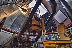 The 2.3 m (91 in) WIRO telescope is a classical Cassegrain reflector optimized for infrared observing. The secondary mirror can be "wobbled" under computer control to allow for rapid sampling of adjacent areas of the sky.[1] From 1977 to around 1980 the telescope was the largest functional infrared telescope in the world.[5]