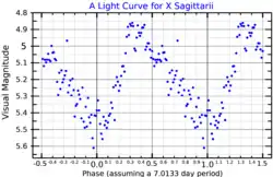 - 1 2 Mathias, P.; et al. (October 2006). "Multiple shock waves in the atmosphere of the Cepheid X Sagittarii?". Astronomy and Astrophysics. 457 (2): 575–579. Bibcode:2006A&A...457..575M. doi:10.1051/0004-6361:20065299.