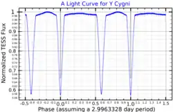 - ↑ Gimenez, A.; Costa, V. (December 1980). "Y CYG : photometry and apsidal motion". Publications of the Astronomical Society of the Pacific. 92: 782–784. Bibcode:1980PASP...92..782G. doi:10.1086/130747. S2CID 120757652.