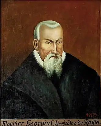 Yuriy Drohobych or Yuriy Kotermak[a] (1450 – 4 February 1494) was a Ruthenian philosopher, astronomer, writer, medical doctor, rector of the University of Bologna, and professor of Kraków Academy, and the first publisher of a Church Slavonic printed text. He is the author of Iudicium Pronosticon Anni 1483 Currentis.[1]