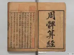The Zhoubi is an anonymous collection of 246 problems encountered by the Duke of Zhou and figures in his court, including the astrologer Shang Gao. Each problem includes an answer and a corresponding arithmetic algorithm.
