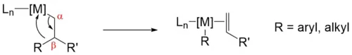 β-Carbon elimination (beta-carbon elimination) is a type of reaction in organometallic chemistry wherein an allyl ligand bonded to a metal center is broken into the corresponding metal-bonded alkyl (aryl) ligand and an alkene.[1] It is a subgroup of elimination reactions. Though less common and less understood than β-hydride elimination, it is an important step involved in some olefin polymerization processes and transition-metal-catalyzed organic reactions.[2]