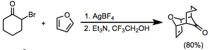 α-Halo ketones with hydrogens at the α' position can also be transformed into oxyallyl cations under basic conditions. This usually requires highly polar media, and the use of a halophilic Lewis acid (such as Ag+) is sometimes necessary.[10]