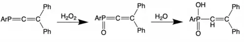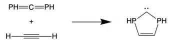 Phosphaallenes have also been investigated as reagents to form carbenes. Reacting the phosphaallene H2P=C=PH with acetylene yields a carbene via [3 + 2]-cycloaddition.[21]