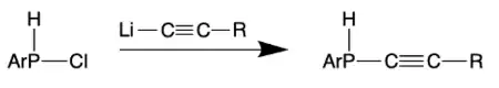Multiple stable phosphaallenes have been synthesized from LiC≡CR and ArP(H)Cl (R = Ph, t-Bu, Me, CH2OSiMe3). The basicity of the lithium complex is essential to the success of these reactions.[4]