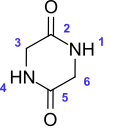2,5-Diketopiperazine is an organic compound with the formula (NHCH2C(O))2. The compound features a six-membered ring containing two amide groups at opposite positions in the ring. It was first compound containing a peptide bond to be characterized by X-ray crystallography in 1938.[1] It is the parent of a large class of 2,5-Diketopiperazines (2,5-DKPs) with the formula (NHCH2(R)C(O))2 (R = H, CH3, etc.). They are ubiquitous peptide in nature. They are often found in fermentation broths and yeast cultures as well as embedded in larger more complex architectures in a variety of natural products as well as several drugs.[2] In addition, they are often produced as degradation products of polypeptides, especially in processed foods and beverages.[3] They have also been identified in the contents of comets.[4]