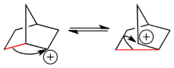 In organic chemistry, the term 2-norbornyl cation (or 2-bicyclo[2.2.1]heptyl cation) describes a carbonium ionic derivative of norbornane. A salt of the 2-norbornyl cation was crystallized and characterized by X-ray crystallography confirmed the non-classical structure.[1]