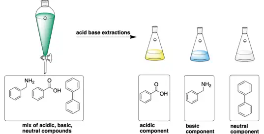 - ↑ "Acid-Base Extraction". Chemistry LibreTexts. 2013-10-03. Retrieved 2022-10-23.