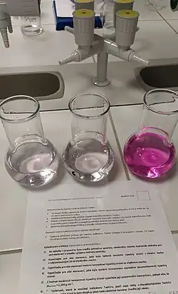 - ↑ Kahlert, Heike; Meyer, Gabriele; Albrecht, Anja (2016-04-29). "Colour maps of acid–base titrations with colour indicators: how to choose the appropriate indicator and how to estimate the systematic titration errors". ChemTexts. 2 (2): 7. doi:10.1007/s40828-016-0026-4. ISSN 2199-3793.