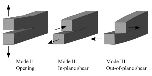 - Mode I is an opening or tensile mode where the loadings are normal to the crack.