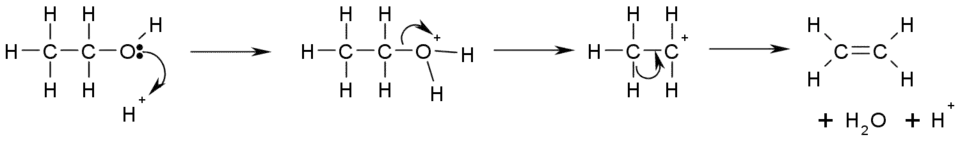 This is a diagram of acid catalyzed dehydration of ethanol to produce ethylene: