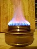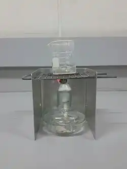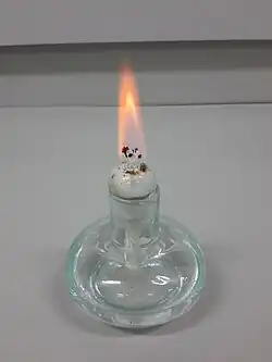 An alcohol burner or spirit lamp is a piece of laboratory equipment used to produce an open flame. It can be made from brass, glass, stainless steel or aluminium.[1]
