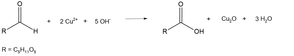 Aldonic acids are the products of the oxidation of aldoses by Benedict's or Fehling's reagents.[7] Copper ions react with an aldose to form a red precipitate, Cu2O.