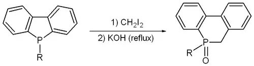 - ↑ Allen, David W.; Millar, Ian T. (1969). "The alkaline hydrolysis of some cyclic phosphonium salts: ring-opening and ring-expansion reactions". Journal of the Chemical Society C: Organic (2): 252. doi:10.1039/J39690000252.