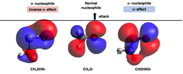 Examples of α-nucleophiles with α-effects are shown in Figure 4. The α-nucleophiles have smaller HOMO lobes than the parent normal nucleophile.
