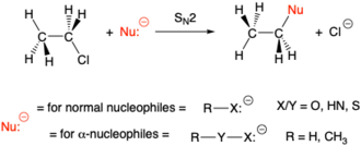 - ↑ Ren, Y; Yamataka, H (Jul 2007). "The alpha-effect in gas-phase SN2 reactions: existence and the origin of the effect". The Journal of Organic Chemistry. 72 (15): 5660–7. doi:10.1021/jo070650m. ISSN 0022-3263. PMID 17590049.