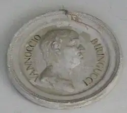 - ↑ Vannoccio Biringuccio, De la Pirotechnia (Venice (Italy): Curtio Navo e fratelli, 1540), Book 2, chapter 3: Del antimonio & sua miniera, Capitolo terzo (On antimony and its ore, third chapter), pp. 27–28. [Note: Only every second page of this book is numbered, so the relevant passage is to be found on the 74th and 75th pages of the text.] (in Italian)