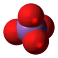 The arsenate is an ion with the chemical formula AsO3−4.[1] Bonding in arsenate consists of a central arsenic atom, with oxidation state +5, double bonded to one oxygen atom and single bonded to a further three oxygen atoms.[2] The four oxygen atoms orient around the arsenic atom in a tetrahedral geometry.[2] Resonance disperses the ion's −3 charge across all four oxygen atoms.