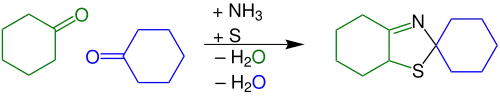 - ↑ Asinger, F.; Offermanns, H. (November 1967). "Syntheses with ketones, sulfur, and ammonia or amines at room temperature". Angewandte Chemie International Edition in English. 6 (11): 907–919. doi:10.1002/anie.196709071.