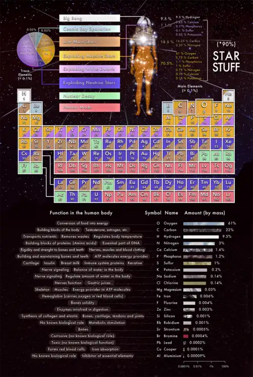 In October 2011, scientists reported that cosmic dust contains organic matter ("amorphous organic solids with a mixed aromatic-aliphatic structure") that could be created naturally, and rapidly, by stars.[28][29][30]